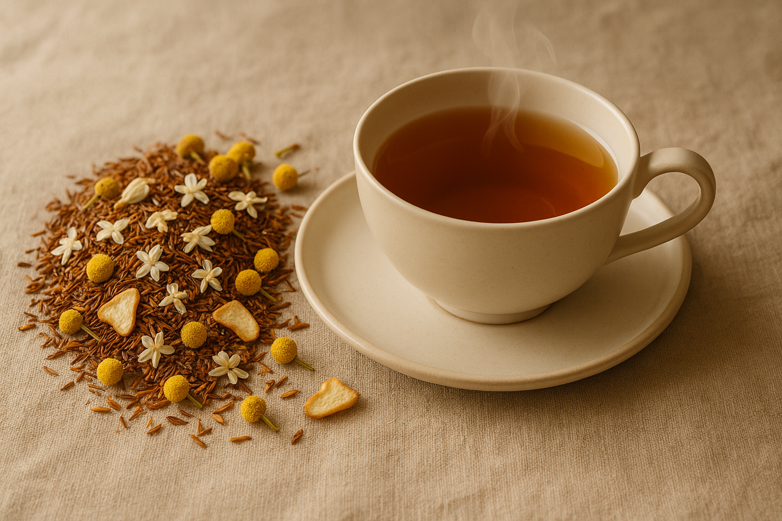 Nosso blend composto por: Rooibos Vermelho, Jasmim, Camomila e Pera é pura harmonia em cada xícara.